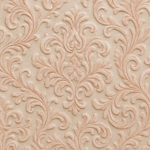 A subtle beige-on-beige damask pattern with raised velvet textures for a soft, elegant look.