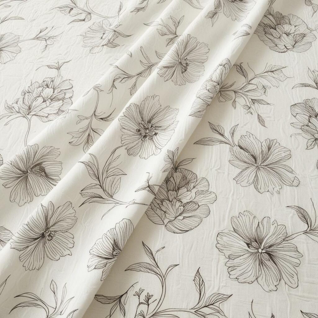 A timeless layout of finely illustrated black florals and foliage dispersed across a crisp white canvas. The hand-drawn aesthetic and tonal consistency evoke vintage botanical sketches, offering both elegance and familiarity. Ideal for stationery, wrapping designs, or monochrome branding elements that aim for sophistication with artistic simplicity.