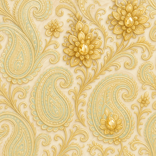 Golden?paisley?and?jeweled?florals?on?beige?an?opulent?design?blending?tradition?with?glamor.