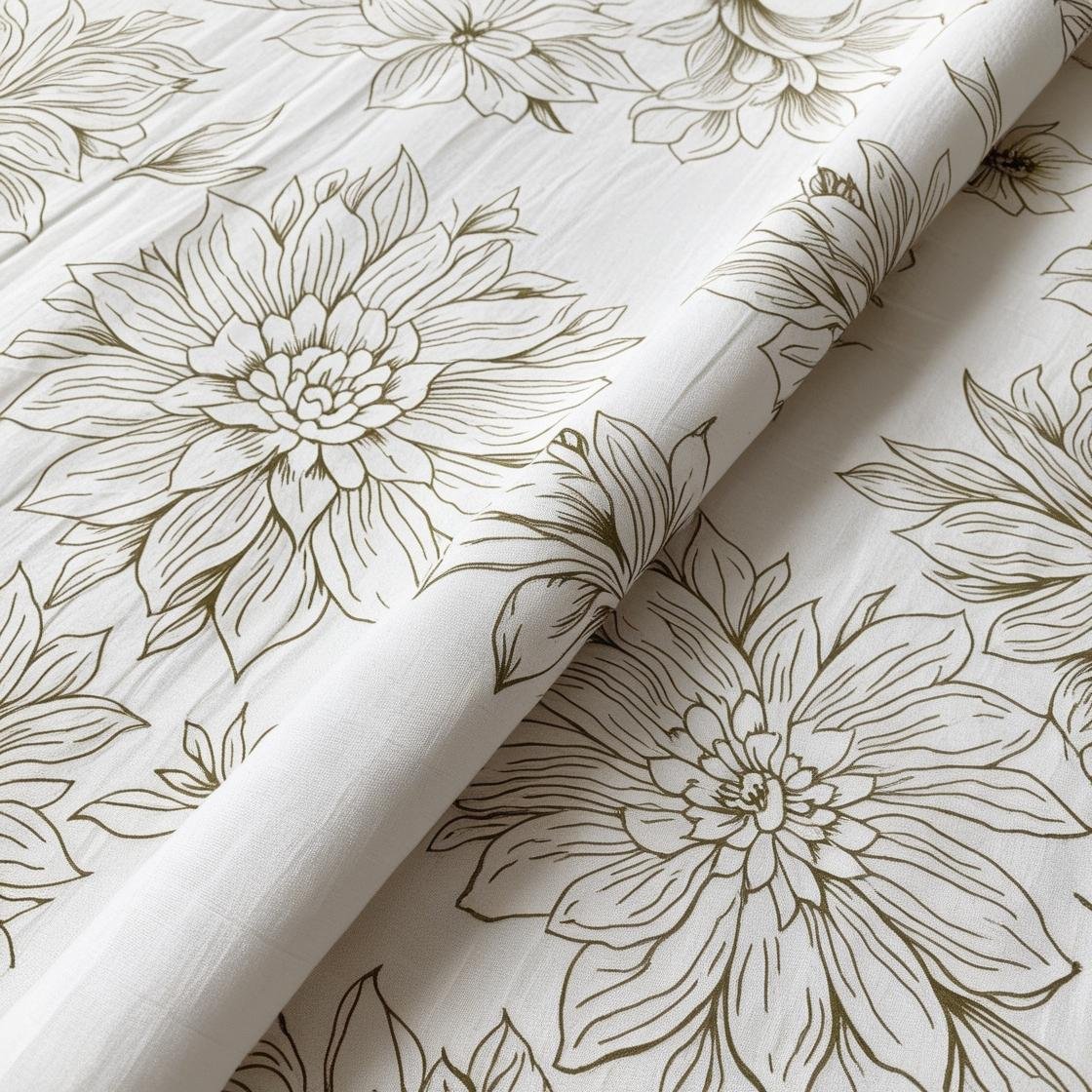 An intricate black linework of florals and foliage unfolds gracefully across a crisp white background. Each bloom is composed with detailed petal structures and delicate vein textures, creating a seamless flow of organic elegance. This monochrome pattern is ideal for sophisticated wrapping paper, fabric prints, or branding elements that blend artistic minimalism with botanical charm.