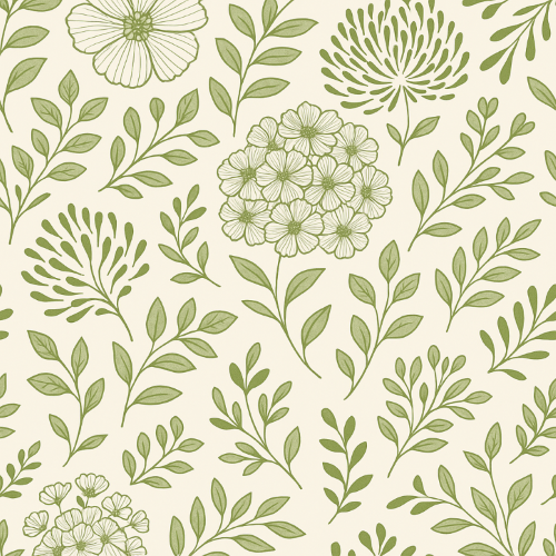 A soothing botanical medley of minty greens and sage leaves sprawls across a warm beige background. With varied leaf shapes?from round florals to slender sprigs?the design offers rhythm and balance, evoking a wild garden bathed in soft morning light. Perfect for eco-conscious gift wraps, nature-inspired packaging, or branding that embraces calm, growth, and organic elegance.