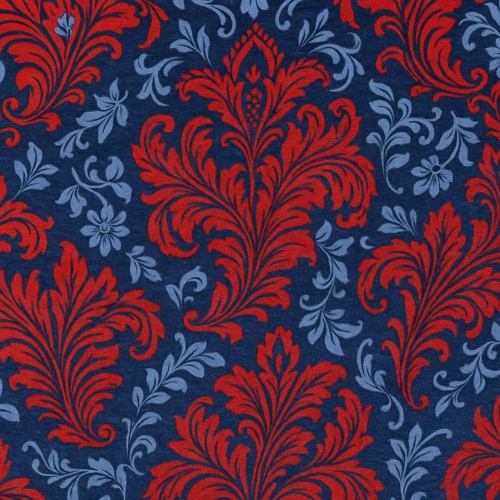 A dramatic ensemble of bold red blossoms layered with soft blue floral accents, all set against a rich navy-blue backdrop. The interplay of vibrant hues and fine petal detailing brings a sense of depth and movement, while the symmetrical composition lends timeless charm. Perfect for evening-inspired gift wraps, sophisticated textiles, or branding that embraces tradition with a modern, moody twist.