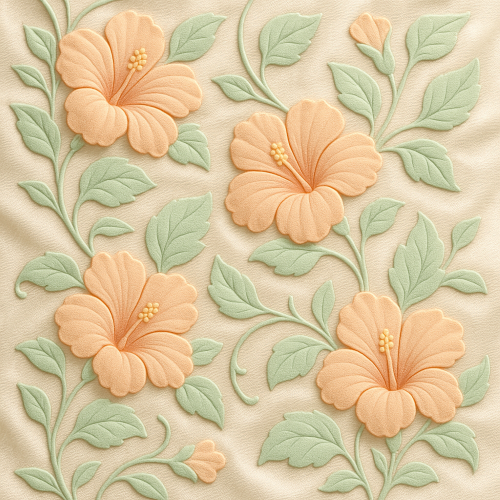 Infuse?your?projects?with?organic?beauty?using?this?stunning?embossed?floral?pattern.?Featuring?four?radiant?peach-hued?flowers?with?golden?yellow?centers,?each?bloom?is?surrounded?by?lush?green?leaves?meticulously?arranged?on?a?warm?beige?canvas.?The?raised?texture?adds?depth?and?a?tactile?dimension,?making?the?design?feel?both?artisanal?and?high-end.