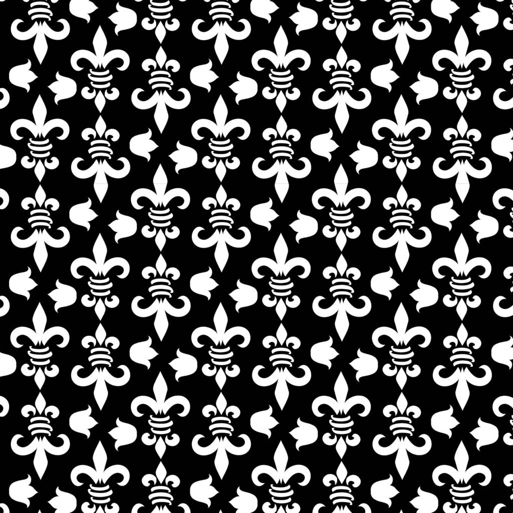 A majestic interplay of white baroque-inspired motifs meticulously arrayed on a jet-black background. Floral flourishes, swirling vines, and diamond lattice shapes form a rhythmic tapestry of elegance and tradition. The balance between scale, structure, and intricacy makes it ideal for luxe gift wraps, couture packaging, or branding projects seeking classic drama with timeless allure.